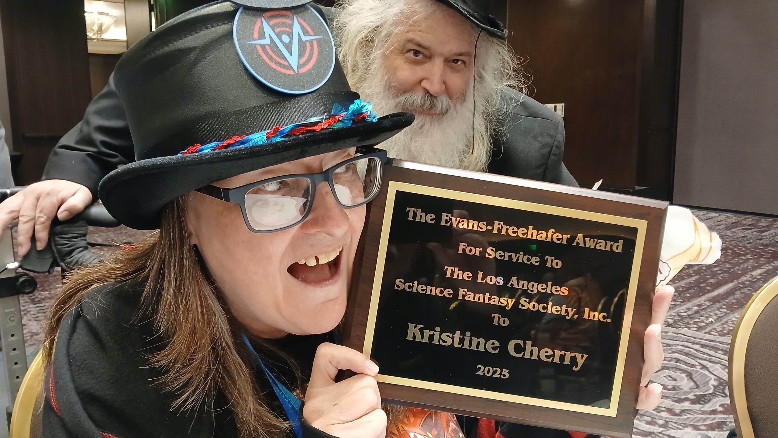 She was presented with the award for her work on the Loscon https://loscon.org/ and LASFS https://lasfs.or/ websites.