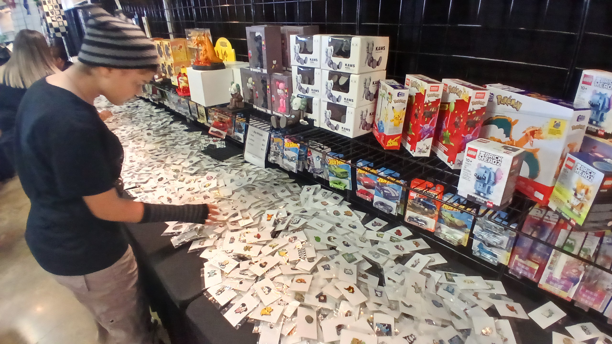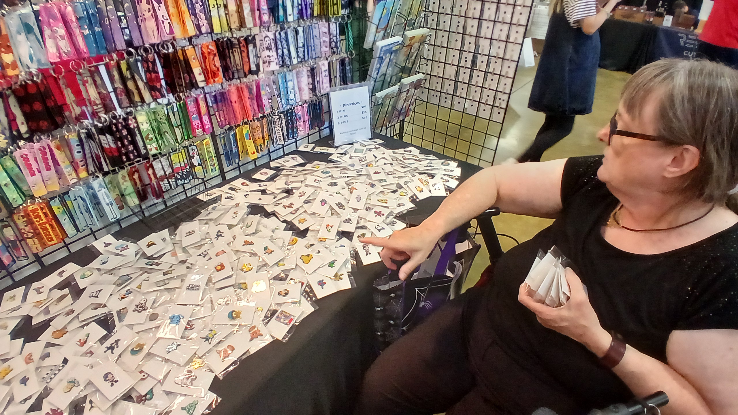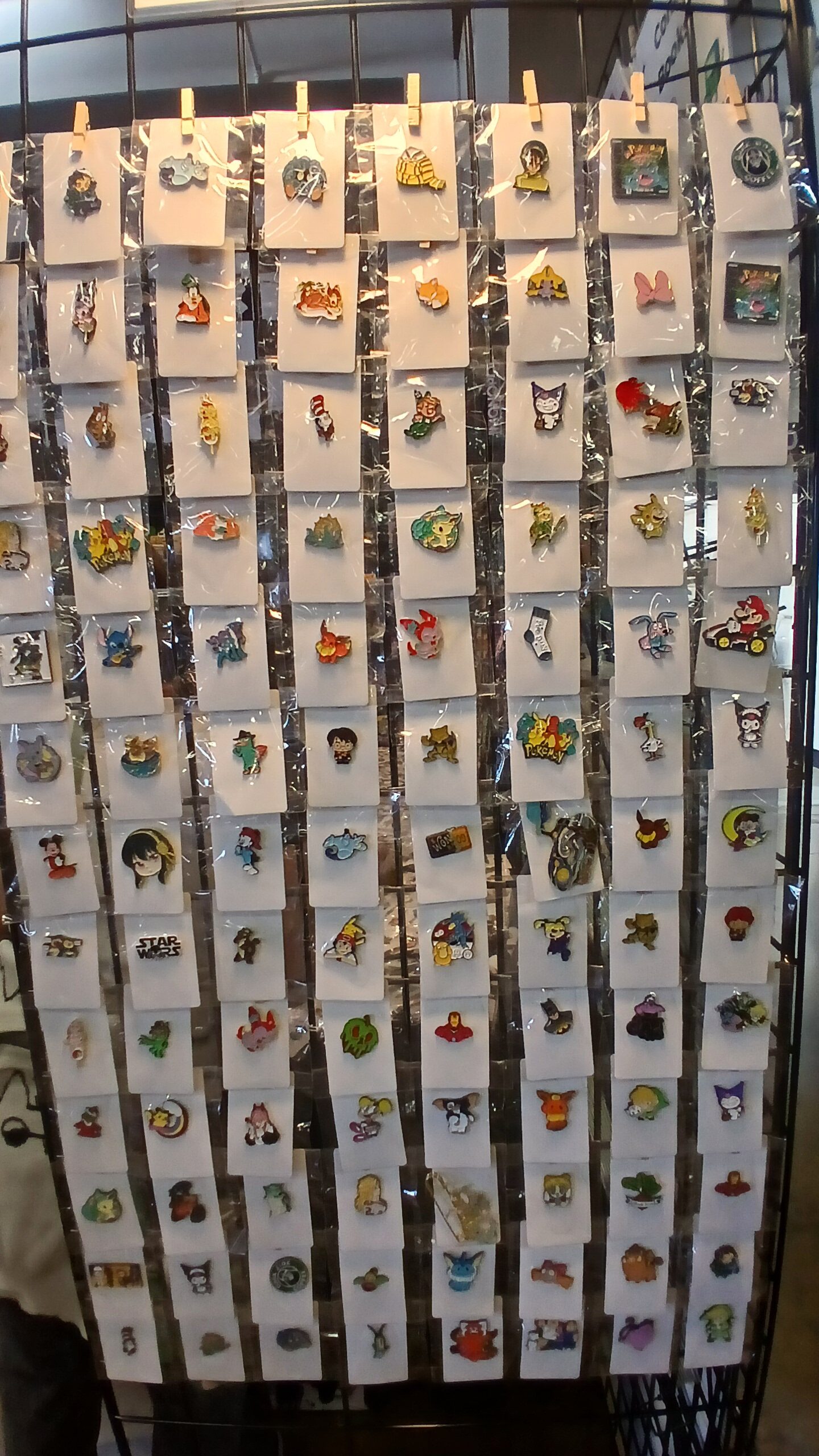 Inside (two rooms) it was like the dealer’s room at an anime con. Check out this pin booth…
