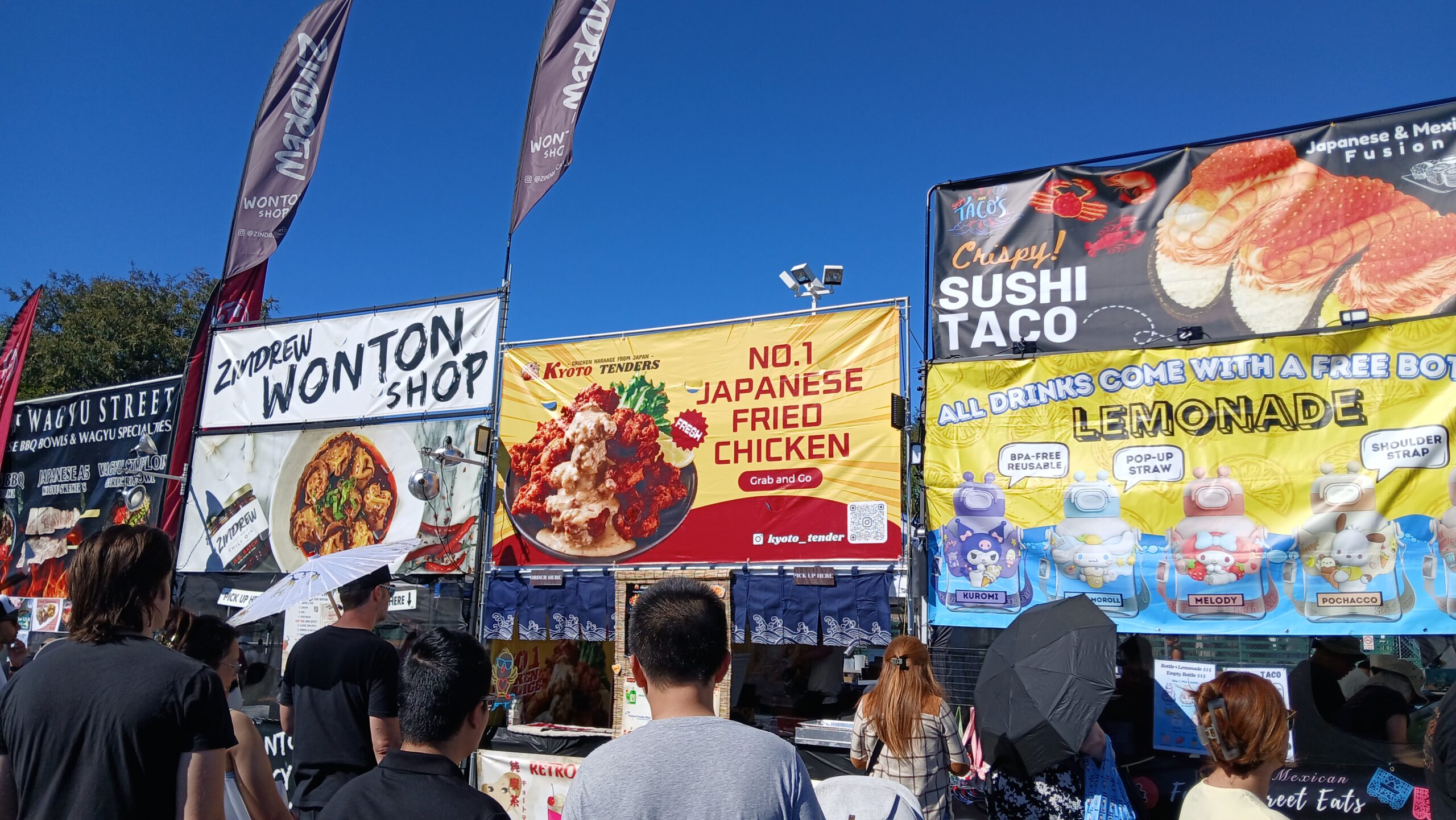 This was foodie heaven. Ten times bigger than the Spirit of Japan in Ventura. No kidding! Sixty-five food vendors as opposed to 12, and 140 non-food vendors as opposed to 3. Outside, vendors as far as the eye could see.