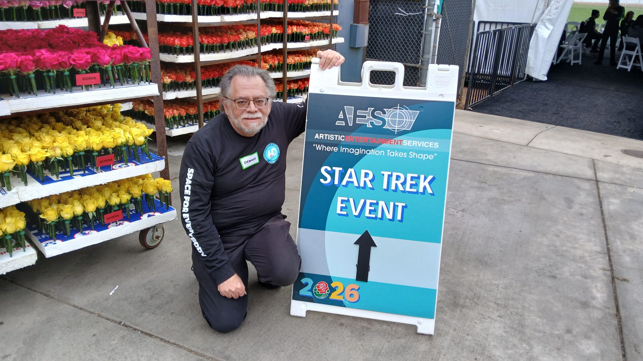 This year, our Star Trek fan club, the U.S.S. Angeles https://ussangeles.org/ was invited to help decorate the Star Trek float in the Rose Parade.  At 8:00 am on December 30th, we met in Pasadena where the floats are assembled.