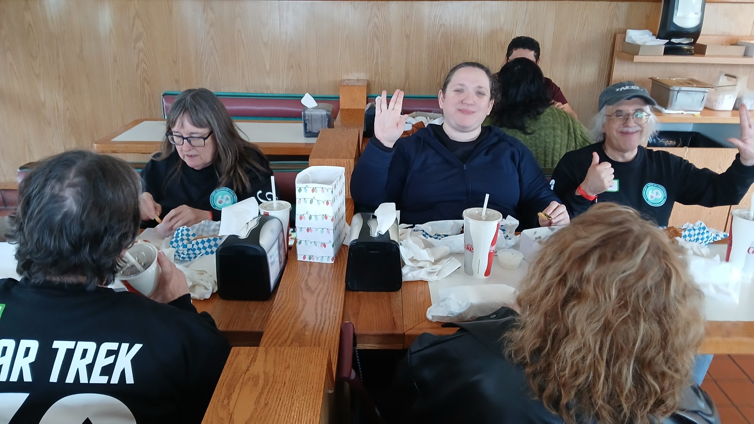 None of us expected to have our own break room with donuts and hot and cold drinks.   We were told that any time we needed a break, we could come back here.  In addition, they gave us all commemorative Star Trek 60th anniversary T-shirts!